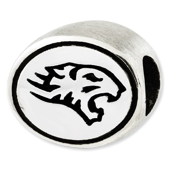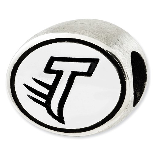 Towson University bead is made of antiqued, solid sterling silver. Two-sided design. Officially licensed product, manufactured by the Collegiate Bead Company in the USA. This bead is compatible with all major personalized bead bracelet systems.