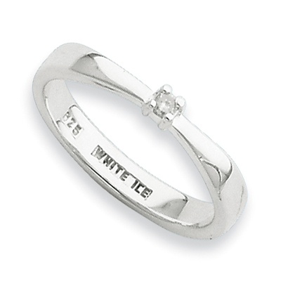 Polished sterling silver. Available in whole finger sizes 6, 7 and 8 only. Diamond ct weight: 0.03. Weight: 2.4 grams. Part of the White Ice jewelry collection.