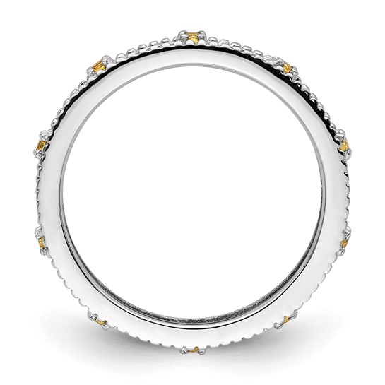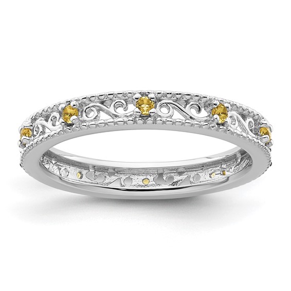 Genuine citrine eternity ring is made of polished sterling silver with rhodium plating. Approximate gemstone total weight: 0.16 carats. Metal weight: 2.0 grams. Width: 3.0mm. Available in whole finger sizes only, 5-10. Imported. Part of the Stackable Expressions collection.