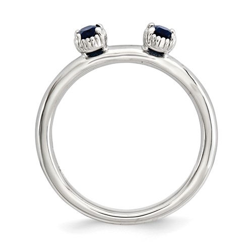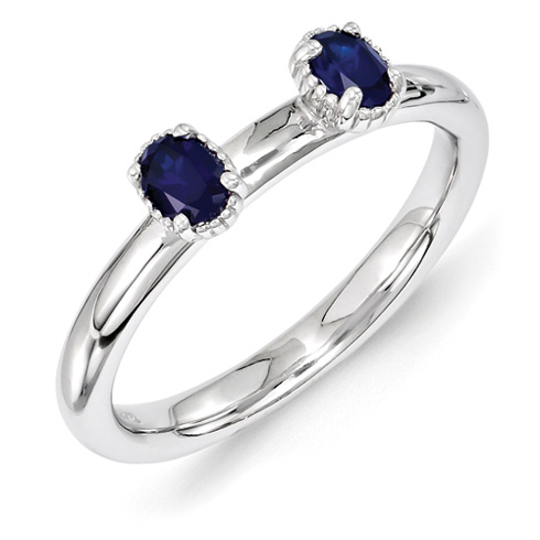Oval created sapphire ring is made of polished sterling silver with rhodium plating. This interlocking ring can only fit next to other interlocking rings or plain bands. Approximate gemstone total weight: 0.50 carats. Metal weight: 3.0 grams. Width: 2.5mm. Available in whole finger sizes only, 5-10. Imported. Part of the Stackable Expressions collection.