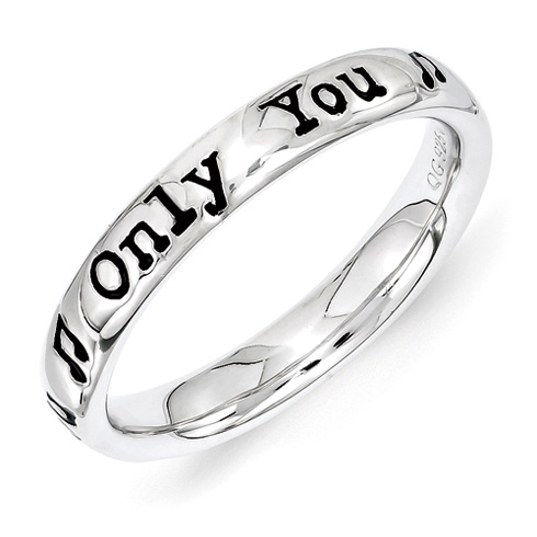 This black enamel stackable ring features the lyrics Only You around the ring. Ring is made of polished sterling silver with rhodium plating. Metal weight: 2.9 grams. Width: 3.25mm. Available in whole finger sizes only, 5-10. Imported. Part of the Stackable Expressions collection.