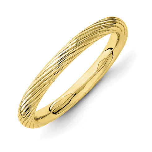This stackable ring with ridges is made of polished sterling silver with yellow gold plating. Metal weight: 2.7 grams. Width: 2.5mm. Available in whole finger sizes only, 5-10. Imported. Part of the Stackable Expressions collection.