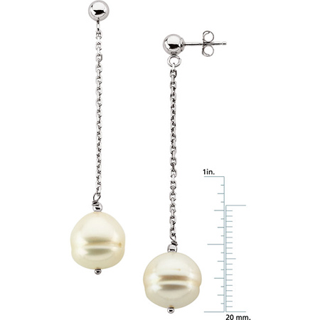 White 9mm pink freshwater cultured drop earrings are made with 14kt white gold. Push on backs. Weight: 0.79 grams.