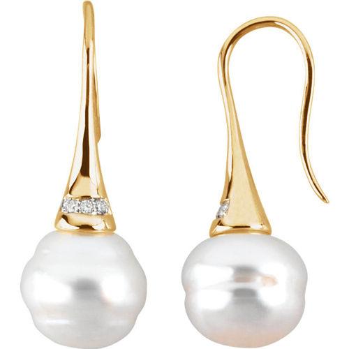 Paspaley South Sea pearl earrings dangle from 14kt yellow gold backs. 10mm diameter, AAA quality, circle undrilled Paspaley South Sea pearls. Shepherd hook backs. Approximate weight: 1.8 grams. Pearl origin: Australia. Includes Paspaley guarantee card. Paspaley South Sea cultured pearls are unrivaled in their beauty. Paspaley guarantees that its pearls are of natural color and luster without artificial enhancements or treatments.