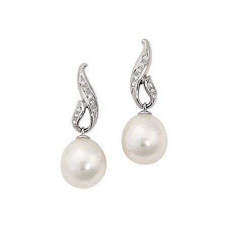 Paspaley South Sea pearl earrings feature diamond accents. 14kt white gold. 12mm diameter, AA quality, drop shape undrilled Paspaley South Sea pearls. Diamond details: 1/5 ct tw, 16 VS clarity, G-H color round full cut diamonds. Post backs. Approximate weight: 3.4 grams. Pearl origin: Australia. Includes Paspaley guarantee card. Paspaley South Sea cultured pearls are unrivaled in their beauty. Paspaley guarantees that its pearls are of natural color and luster without artificial enhancements or treatments.