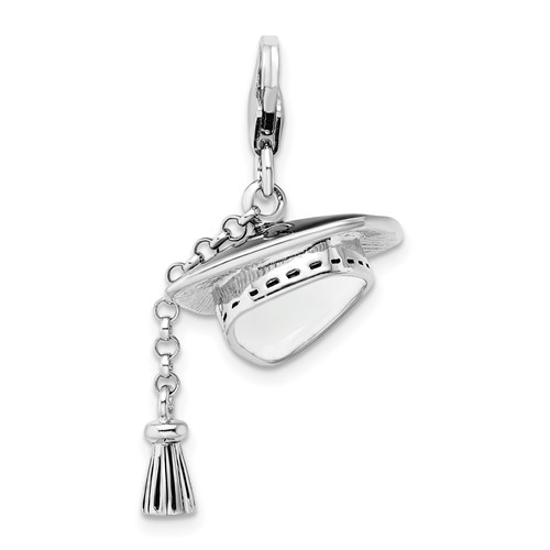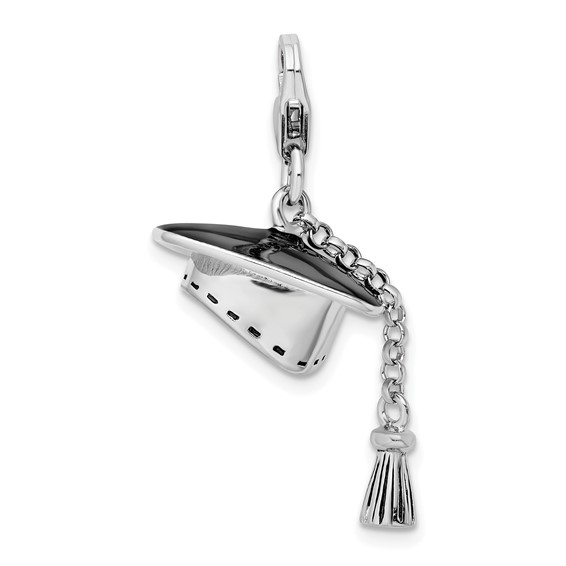 This graduation hat with tassel is part of the Amore La Vita collection. Made of sterling silver. Dimensions: 25 MM x 20 MM. Weight: 3.59 grams.Features: E-coatedEnamelFancy lobster clasp Moveable Polished Solid sterling silver