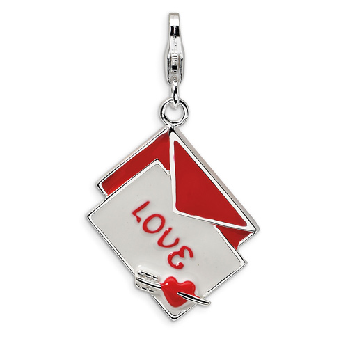 Enameled love letter charm is part of the Amore La Vita collection. Made of sterling silver. Dimensions: 35 MM x 20 MM including clasp. Weight: 3.68 grams.Features: E-coatedEnamelFancy lobsterReversibleSolidSterling silver