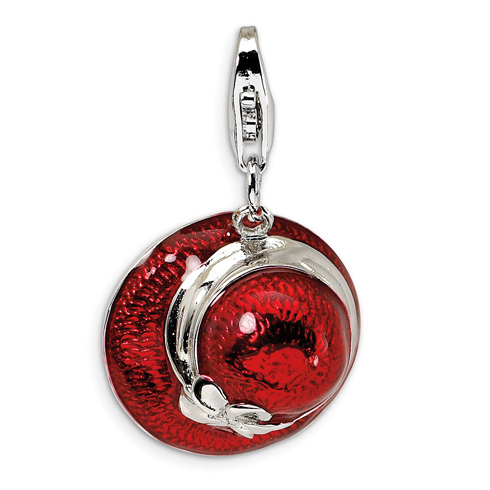 This red fancy hat charm is part of the Amore La Vita collection. Made of sterling silver. Dimensions: 26 MM x 15 MM including lobster clasp. Weight: 3.28 grams. Import.