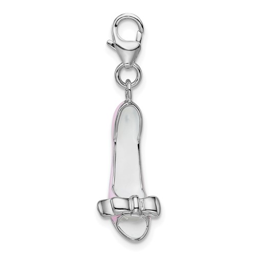 Pink enamel bow-top high heel charm is made of sterling silver. Dimensions: 30 MM x 15 MM including lobster clasp. Three dimensional. Weight: 2.56 grams. Part of the Amore La Vita collection. Import.