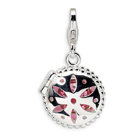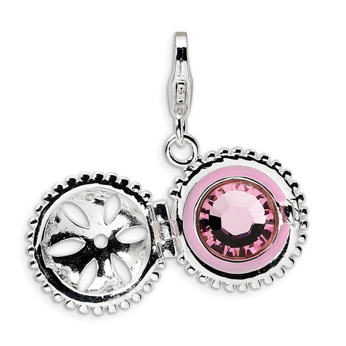 Sterling silver compact charm has a pink Swarovski crystal. Dimensions: 26 MM x 13 MM including lobster clasp. Weight: 3.68 grams. Part of the Amore La Vita collection. Features: 3-DE-coatedEnamelOpens