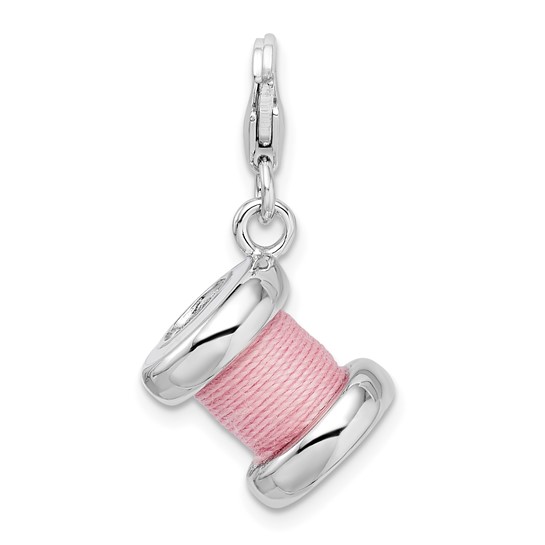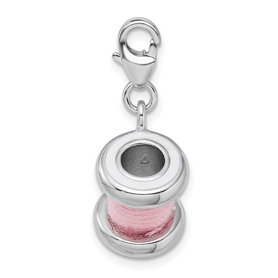 Sterling silver pink spool of thread charm is part of the Amore La Vita collection. Dimensions: 25 MM x 14 MM with lobster clasp. Weight: 5.32 grams.Features: PolishedSolid3-DSterling silverE-coatedFabric cord