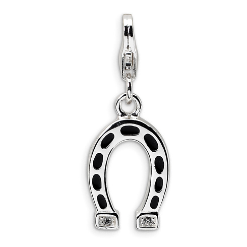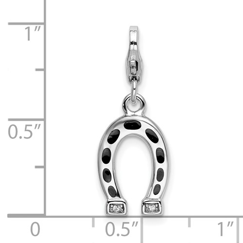 Crystal horseshoe charm is made of sterling silver. Dimensions of charm including clasp: 26mm x 10mm. Weight: 1.77 grams. Swarovski crystals and black Enamel. Part of the Amore La Vita collection. Made of Import.