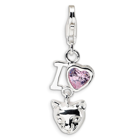 I love cats charm is made of sterling silver with a pink heart shaped cubic zirconia. Dimensions: 29 MM x 10 MM including lobster clasp. Part of the Amore La Vita collection.