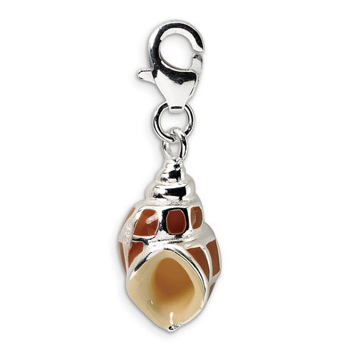Sterling silver shell charm has brown enamel. Dimensions from top to bottom of clasp and charm: 27mm x 10mm. Weight: 3.58 grams. Part of the Amore La Vita collection. Fancy lobster clasp. Import.