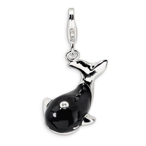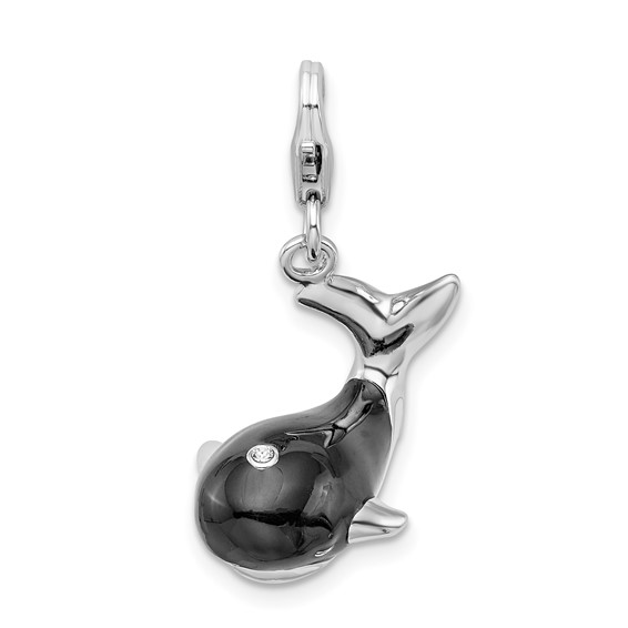 Sterling silver whale charm has black enamel and a Swarovski crystal accent. Part of the Amore La Vita collection. Dimensions: 27 MM x 16 MM with lobster clasp. Import.