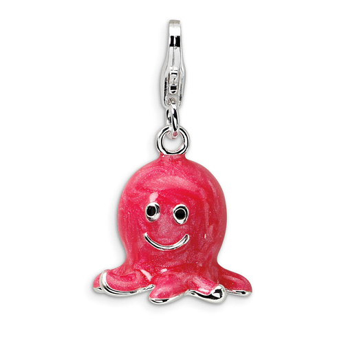 Octopus charm is made of enamel and sterling silver. Dimensions: 26mm x 15mm with clasp. Part of the Amore La Vita collection. Weight: 4.38 grams Fancy lobster clasp. Import.