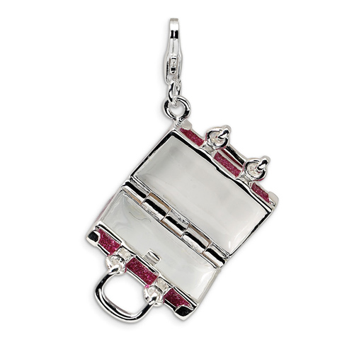 Fuschia luggage charm is made of enamel and sterling silver. Part of the Amore La Vita collection. Made of sterling silver. Dimensions: 32 MM x 16 MM including clasp. The luggage opens and closes. Weight: 7.21 grams. Made in Thailand. Ships from USA.