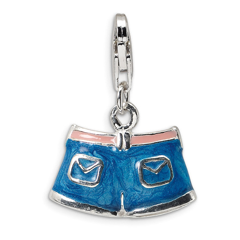 Sterling silver enamel blue jean shorts charm is part of the Amore La Vita collection. Dimensions: 24 MM x 17 MM including lobster clasp. Weight: 2.8 grams. Made in Thailand. Ships from USA.