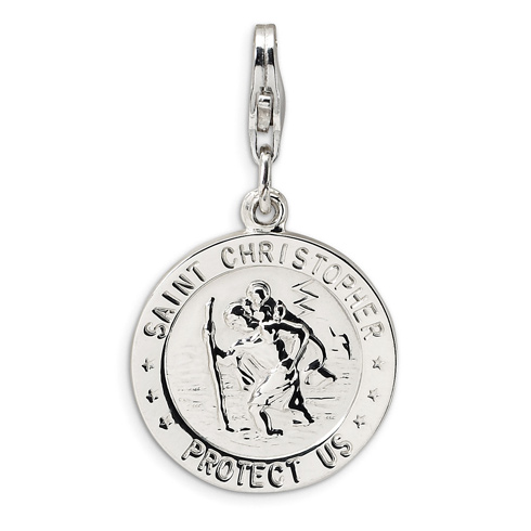 Sterling silver Saint Christopher round charm is part of the Amore La Vita collection. Dimensions: 18mm without clasp. This item is the size of a dime. Import.