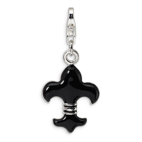 Sterling silver black enameled fleur de lis charm is part of the Amore La Vita collection. Dimensions: 30MM x 14MM including lobster clasp. Weight: 2.07 grams. Import.
