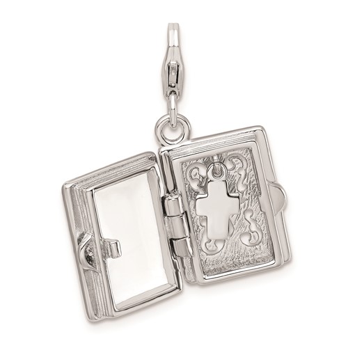 Bible charm is part of the Amore La Vita collection. Made of sterling silver. Dimensions: 30 MM x 13 MM including the lobster clasp. The bible charm opens and closes. Approximate weight: 6.15 grams.