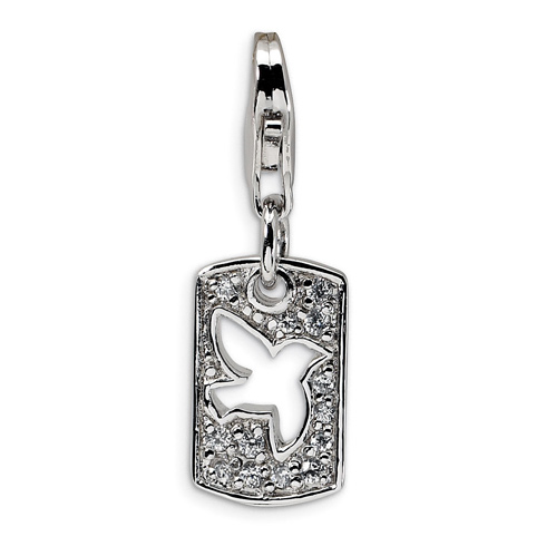 Cut-out dove clip-on charm is part of the Amore La Vita collection. Made of sterling silver. Dimensions: 27 MM x 9 MM. Weight: 3.06 grams.Features: E-coatedFancy lobster clasp