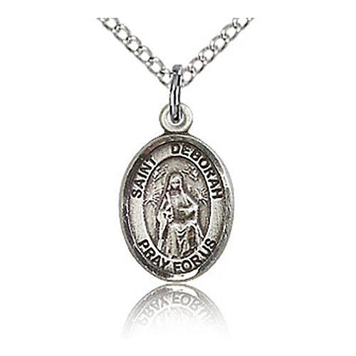 Die struck, hand-engraved St Deborah charm. Free 18-inch sterling silver lite curb chain with lobster clasp. Plain back. Dimensions: 1/2in x 1/4in. This item is half the height of a quarter. Made in USA.