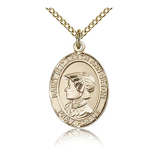 This 3/4 inch medal necklace featuring St. Elizabeth is die struck and hand-engraved. Inscription: SAINT ELIZABETH PRAY FOR US. Free 18-inch sterling silver lite curb chain with lobster clasp. Dimensions: 3/4in x 1/2in. This item is the size of a penny. Made in USA.