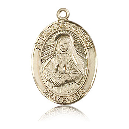 Die struck, hand-engraved St Frances Cabrini medal is made of polished, solid 14kt yellow gold. Inscription: SAINT FRANCES CABRINI PRAY FOR US. Dimensions: 1in x 3/4in. This item is the size of a quarter. Made in USA.