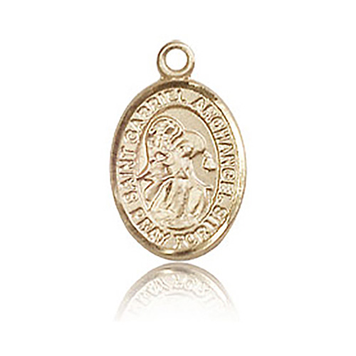 Die struck, hand-engraved medal is made of polished, solid 14kt yellow gold. Inscription: SAINT GABRIEL ARCHANGEL PRAY FOR US. Dimensions: 1/2in x 1/4in. This item is half the height of a quarter. Made in USA.