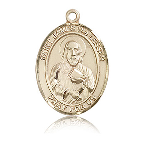 Die struck, hand-engraved St James the lesser medal is made of polished, solid 14k yellow gold. Inscription: SAINT JAMES the LESSER PRAY FOR US. Dimensions: 1in x 3/4in. This item is the size of a quarter. Made in USA.