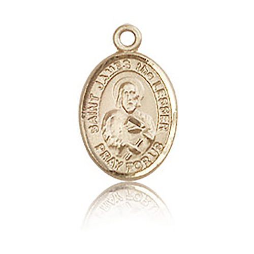St. James the Lesser die struck, hand-engraved medal is made of polished, solid 14kt yellow gold. Inscription: SAINT JAMES PRAY FOR US. Dimensions: 1/2in x 1/4in. This item is half the size of a quarter. Made in USA.