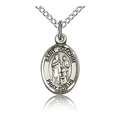 Die struck, hand-engraved St Joachim charm. Free 18-inch sterling silver lite curb chain with lobster clasp. Plain back. Dimensions: 1/2in x 1/4in. This item is half the size of a quarter. Made in USA.