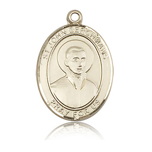 Die struck, hand-engraved St John Berchmans medal is made of polished, solid 14k yellow gold. Inscription: SAINT JOHN BERCHMANS PRAY FOR US. Dimensions: 1in x 3/4in. This item is the size of a quarter. Made in USA.