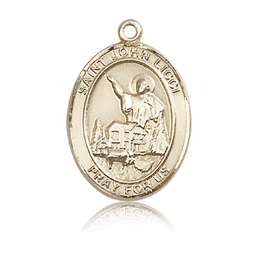 St John Licci medal is made of polished, solid 14k yellow gold. Inscription: SAINT JOHN LICCI PRAY FOR US. Dimensions: 1in x 3/4in. This item is the size of a quarter. Made in USA.