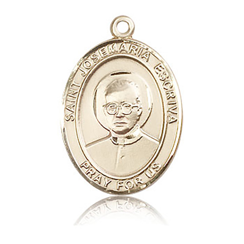 St Josemaria Escriva medal is made of polished, solid 14k yellow gold. Inscription: SAINT JOSEMARIA ESCRIVA PRAY FOR US. Dimensions: 1in x 3/4in. This item is the size of a quarter. Made in USA.