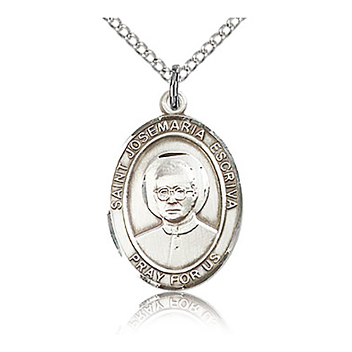Die struck, hand-engraved medal. Inscription: SAINT JOSEMARIA ESCRIVA PRAY FOR US. Free 18-inch sterling silver lite curb chain with lobster clasp. Dimensions: 3/4in x 1/2in. This item is the size of a penny. Made in USA.