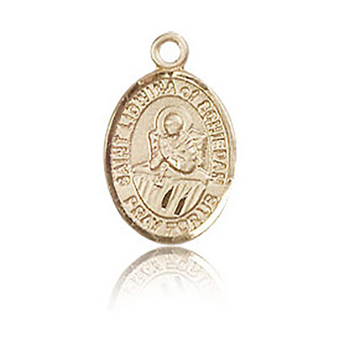Die struck, hand-engraved medal is made of polished, solid 14kt yellow gold. Inscription: SAINT LIDWINA of SCHIEDAM PRAY FOR US. Dimensions: 1/2in x 1/4in. This item is half the size of a quarter. Made in USA.