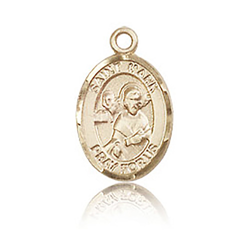 This very small oval St Mark medal charm is made of polished, solid 14k yellow gold. Inscription: SAINT MARK PRAY FOR US. Dimensions: 1/2in x 1/4in. This item is half the size of a quarter. Die struck, hand-engraved. Made in USA.
