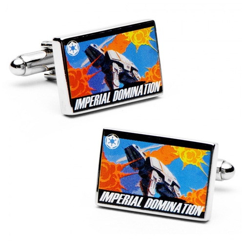 Celebrate Star Wars in style with the officially licensed Imperial Domination Propaganda Poster Cufflinks By Lucasfilm. Each pair of cufflinks ships in an elegant black Star Wars foldover box.Item details:Approximately 3/4in by 5/8inSilver plated with printed imageBullet back closer