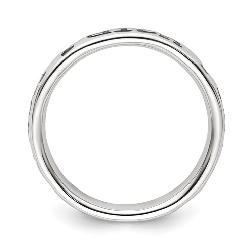 The word Faith is repeated four times in black enamel on this polished sterling silver stackable ring. Metal weight: 3.25 grams. Available in whole finger sizes only, 5-10. Imported. Part of the Stackable Expressions collection.