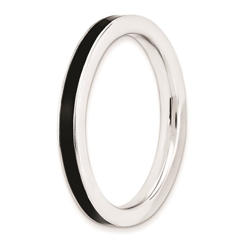 This sleek black enameled stackable ring is made of polished sterling silver. Width: 2.25mm. Metal weight: 2 grams. Import. Available in whole finger sizes only, 5-10. Part of the Stackable Expressions collection.