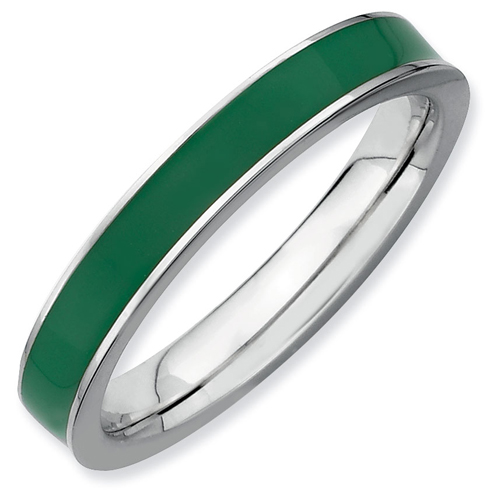 Stackable ring features green enamel and is made of polished sterling silver. Width: 3.25mm. Metal weight: 2.4 grams. Available in whole finger sizes only, 5-10. Imported. Part of the Stackable Expressions collection.