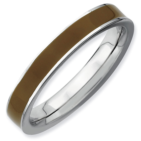 Stackable ring features brown enamel and is made of polished sterling silver. Width: 3.25mm. Metal weight: 2.4 grams. Available in whole finger sizes only, 5-10. Imported. Part of the Stackable Expressions collection.