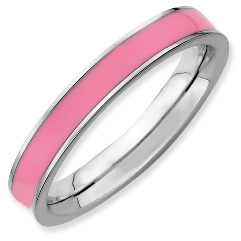 Stackable ring features pink enamel and is made of polished sterling silver. Width: 3.25mm. Metal weight: 2.4 grams. Available in whole finger sizes only, 5-10. Imported. Part of the Stackable Expressions collection.