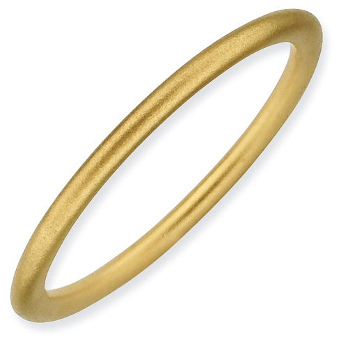 This 1.5mm wide stackable ring is made of sterling silver with 18kt yellow gold plating. Satin finish. Metal weight: 1.5 grams. Available in whole finger sizes only, 5-10. Imported. Part of the Stackable Expressions collection.