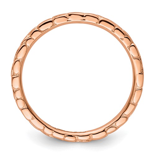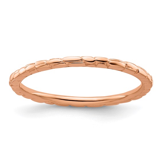This slender stackable ring is made of polished sterling silver with 18kt rose gold plating. Distinctive twisted design. Width: 1.5mm. Metal weight: 1.62 grams. Imported. Part of the Stackable Expressions collection.