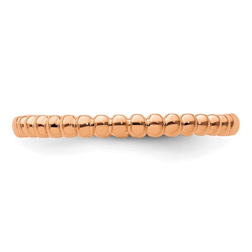 Stackable 2.25mm beaded ring is made of polished sterling silver with 18kt rose gold-plating. Metal weight: 1.87 grams. Available in whole finger sizes only, 5-10. Imported.
