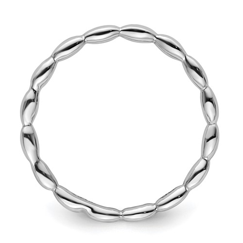 Stackable Expressions 2.25mm band is made of polished sterling silver with rhodium plating. Rice bead design. Metal weight: 1.7 grams. Available in whole finger sizes only, 5-10. Imported.