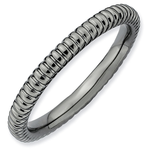 Stackable Expressions 2.25mm band is made of polished sterling silver with ruthenium plating. Metal weight: 2.45 grams. Available in whole finger sizes only, 5-10. Imported.